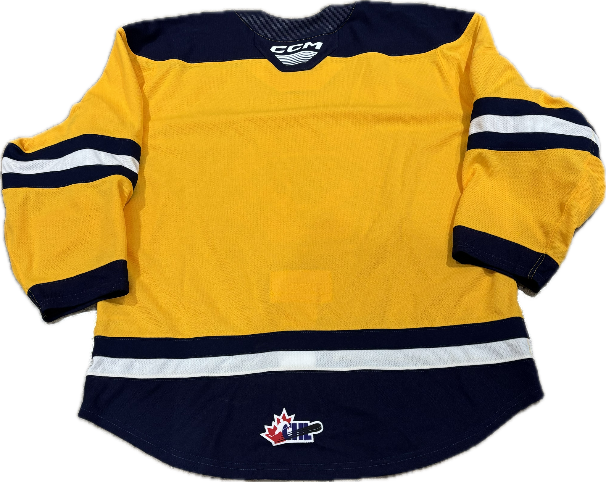 Authentic Gold CCM Jersey with Fight Strap. The same one the players wore on the ice for the 2023-2024 season.