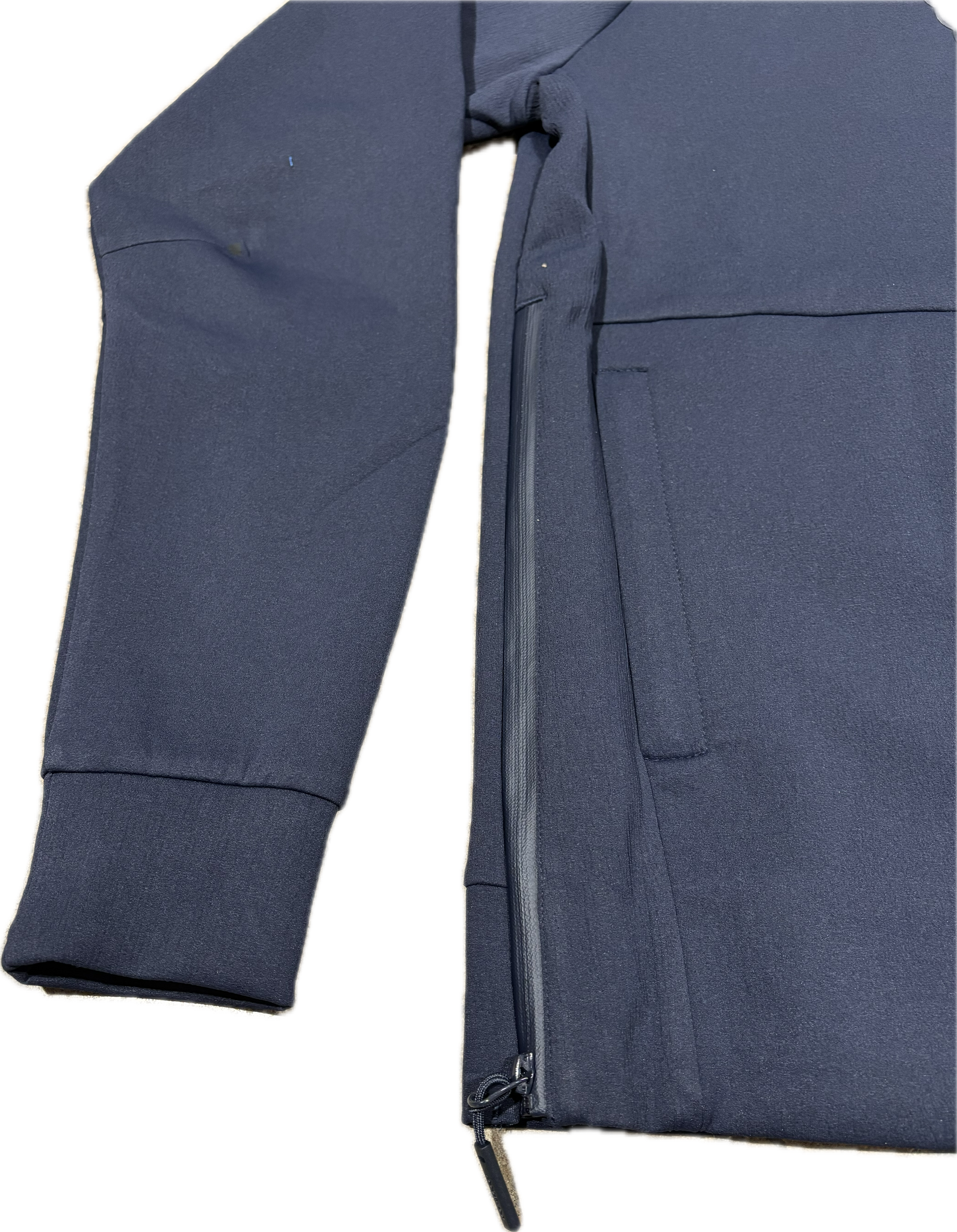 Navy hoodie with black rubber logo, zipper sides and magnetic pockets. 90% polyesters, 10% spandex.