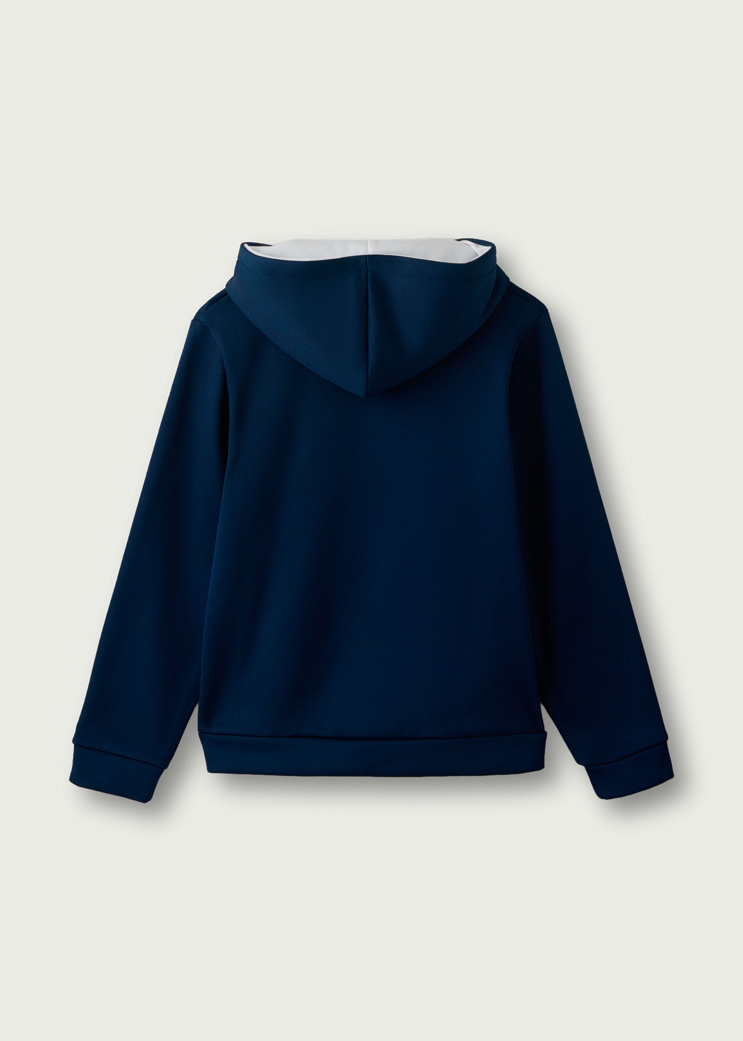 Youth Navy Hoodie with Zippered Front Pocket. 100% Polyester.