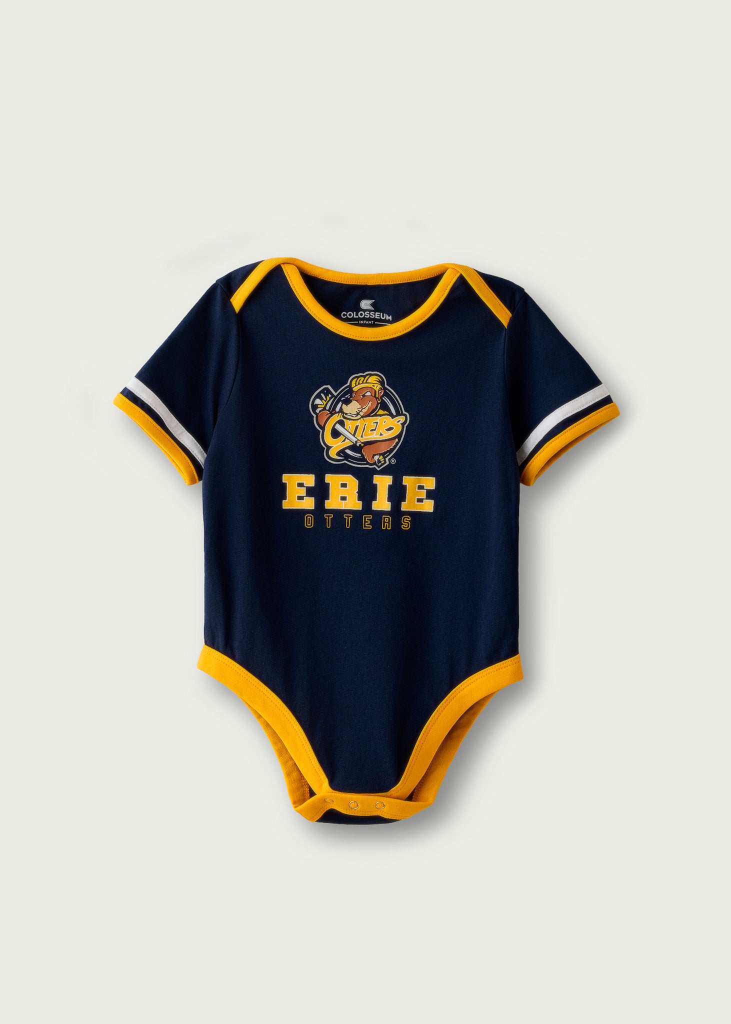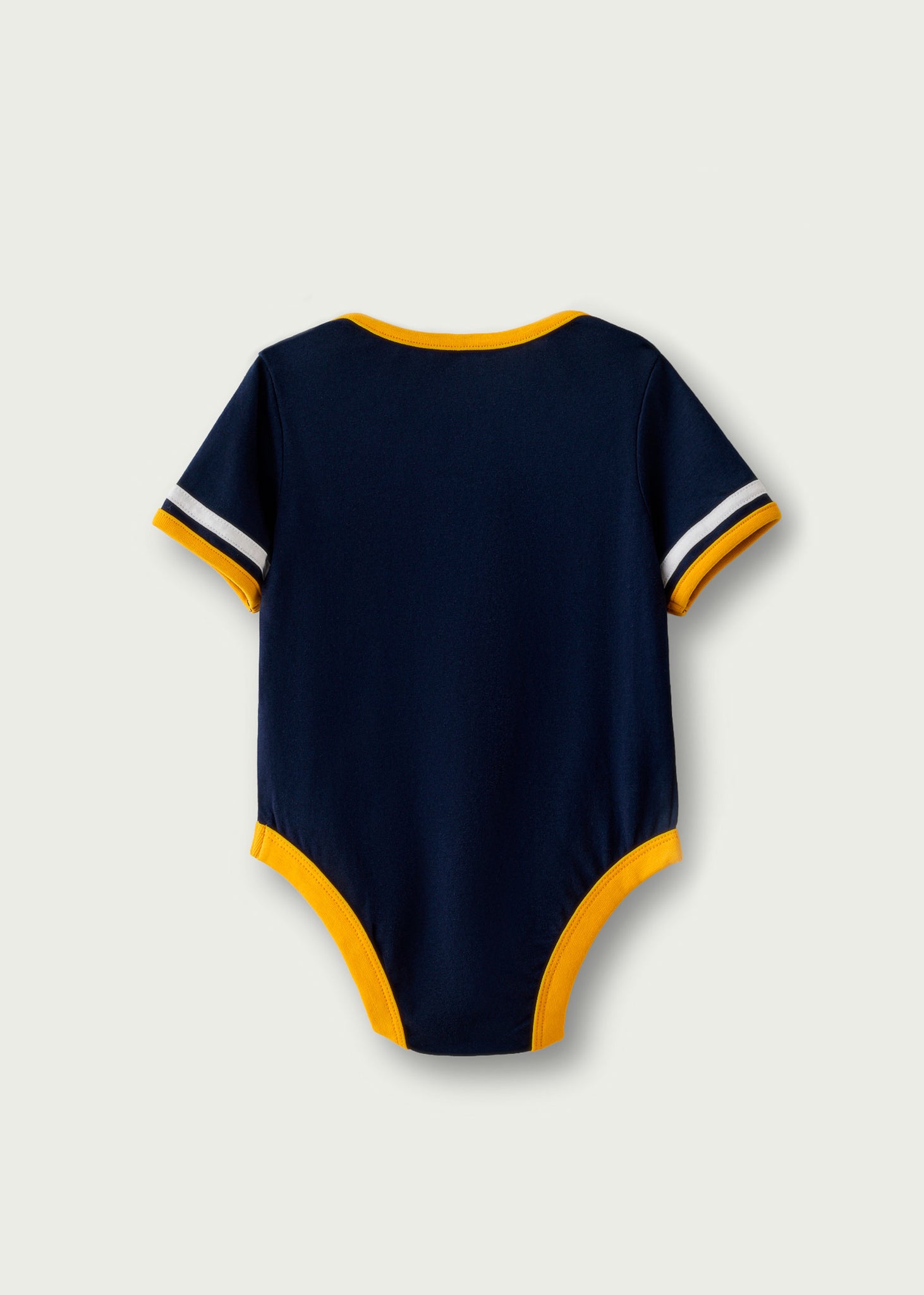 Navy and gold onesie and bib set.
