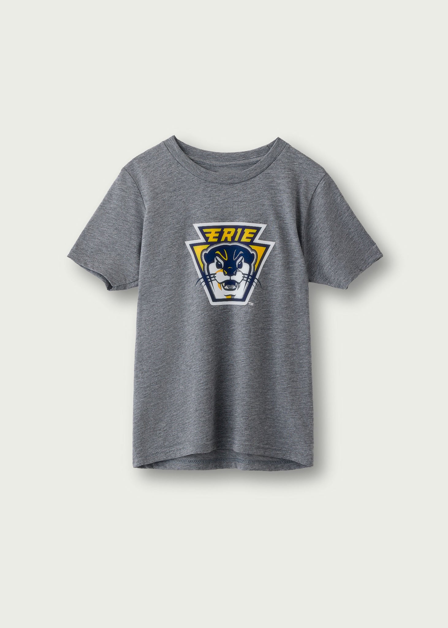 Grey t-shirt with our secondary logo. Made locally at Erie Apparel. 50% polyester, 25% cotton, 25% rayon.