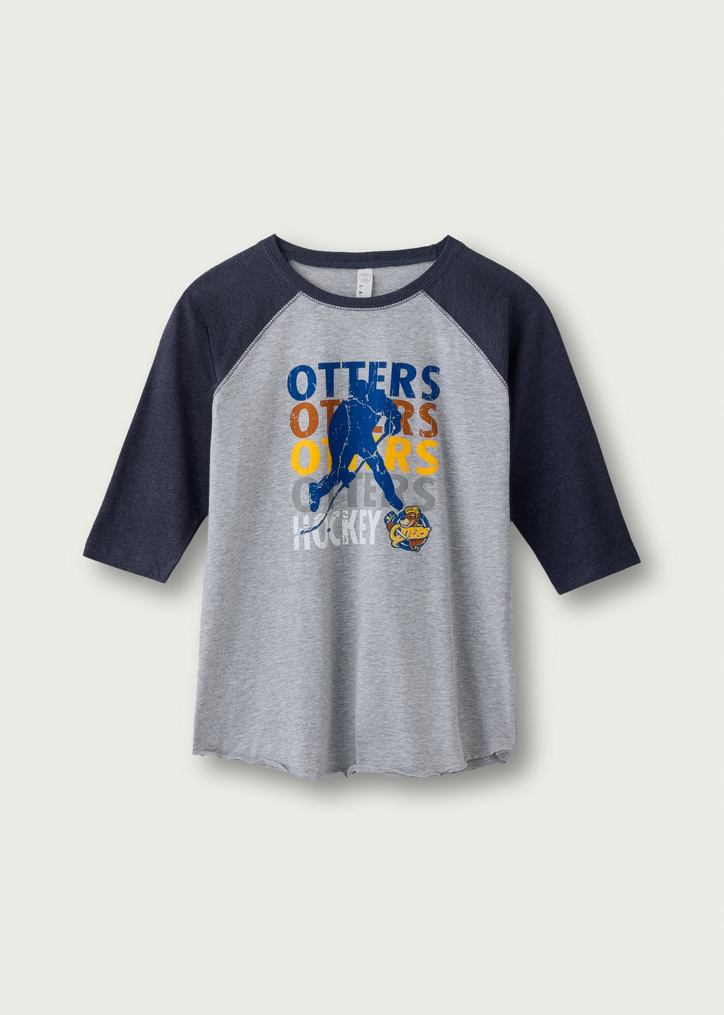 3/4 sleeve t-shirt. 60% cotton, 40% polyester.