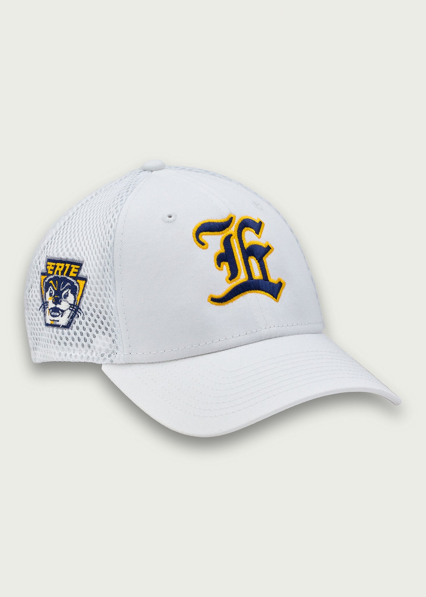 White New Era stretch mesh hat.